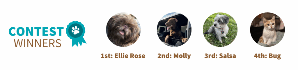 Ellie Rose took first place in the 2025 Pet Photo Contest with a total of 31,495 votes! Molly came in second with 5,676 votes. Salsa took third place in the last minutes of the contest with 3,466 votes. And Bug, the only cat in the top 4, took fourth with 3,173 votes.