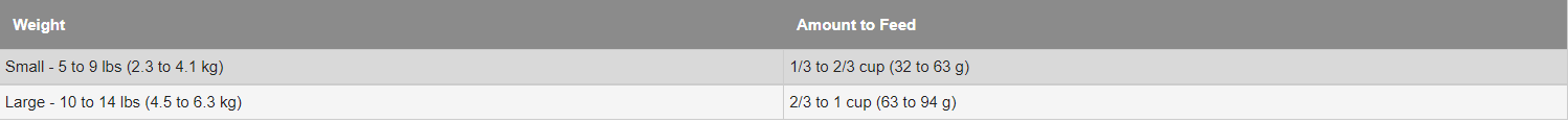 Pets need the right nutrition to ensure a healthy lifestyle. See the recommended feeding amounts and instructions below as provided by Purina.
